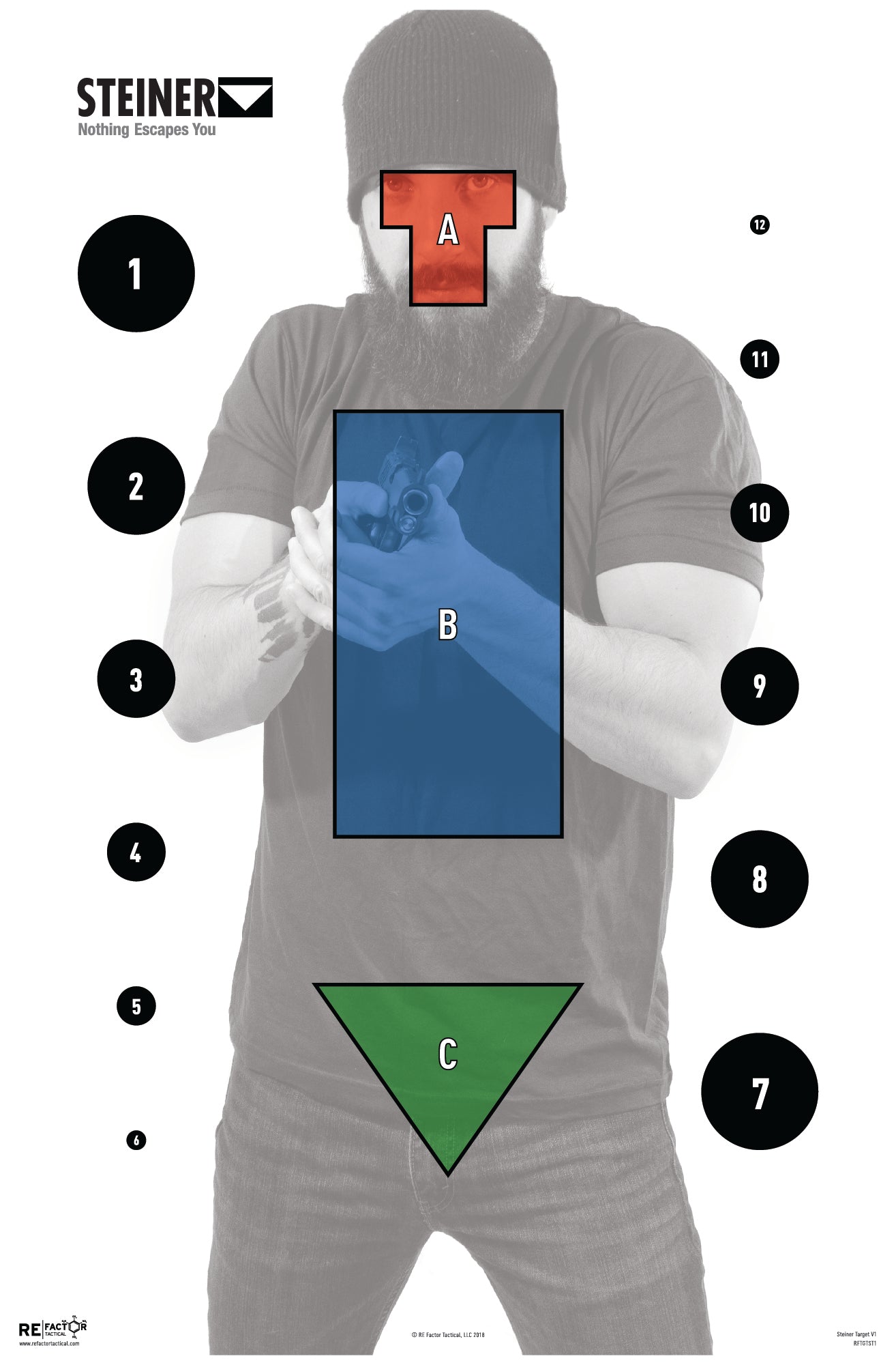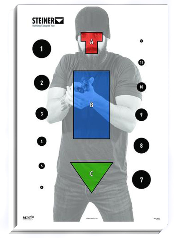 The Steiner Target series are made in conjunction with Steiner Optics. These targets come in two variations, CQB (close quarters battle) and long range.