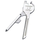 This discreet multi-tool looks just like a standard key but carries six essential functions: a flat screwdriver, Phillips screwdriver, serrated blade, straight blade, bottle opener, and a micro eyeglass screwdriver. Made from durable stainless steel, the Utili-Key attaches easily to your key ring, takes up virtually no pocket space, and measures approximately 2.75" long by 0.75" wide.