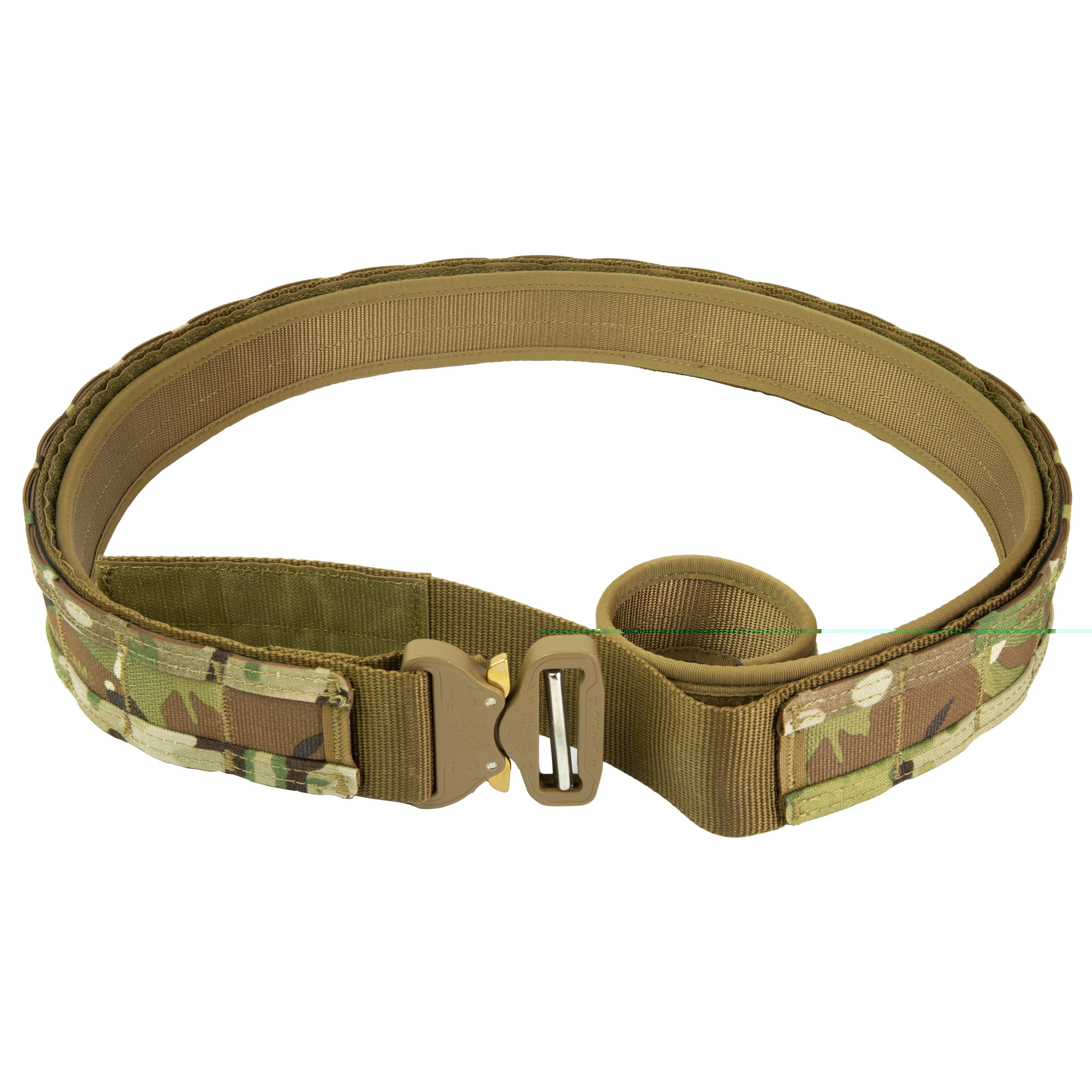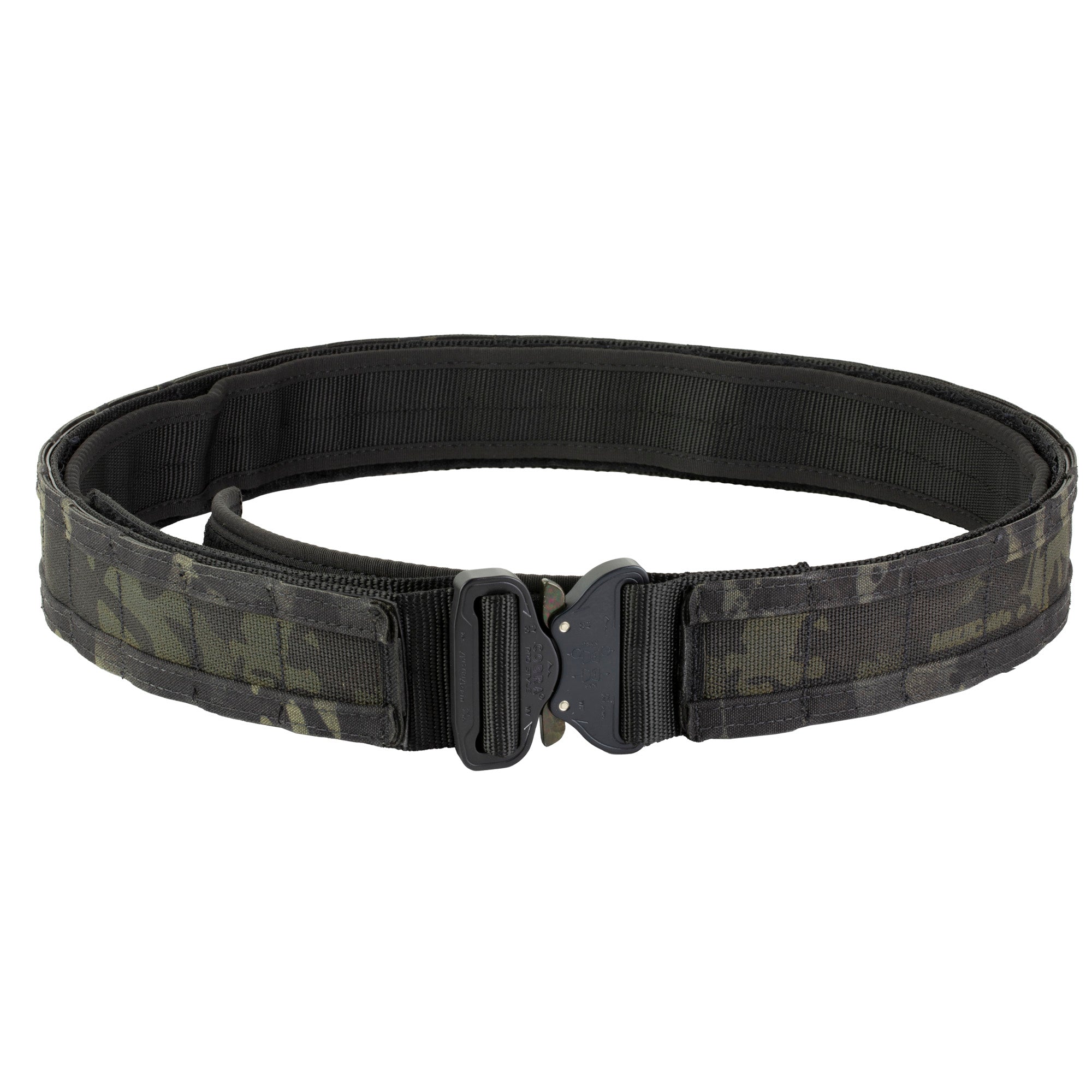 The D3 Belt provides a proven foundation to support any mission requirement for the modern warfighter delivering optimal synergy between belt rigidity and comfort. Constructed of 2" nylon webbing instead of the common industry practice of 1.5" or 1.75" webbing allows for an appropriate 1 inch spacing between MOLLE positions eliminating binding on pouches and other MOLLE attached accessories. The D3 Belt is designed with reversed closure orientation to eliminate bulk material from excess sizing adjustments and to access additional MOLLE real estate, enabling more options for holster mounting. To ensure load bearing function a proprietary internal stiffener is incorporated into the design for added rigidity without compromising weight, comfort or flexibility. The inside of the belt is lined with hook Velcro and closes with the proven Cobra buckle for quick attachment capability with the included inner belt.
