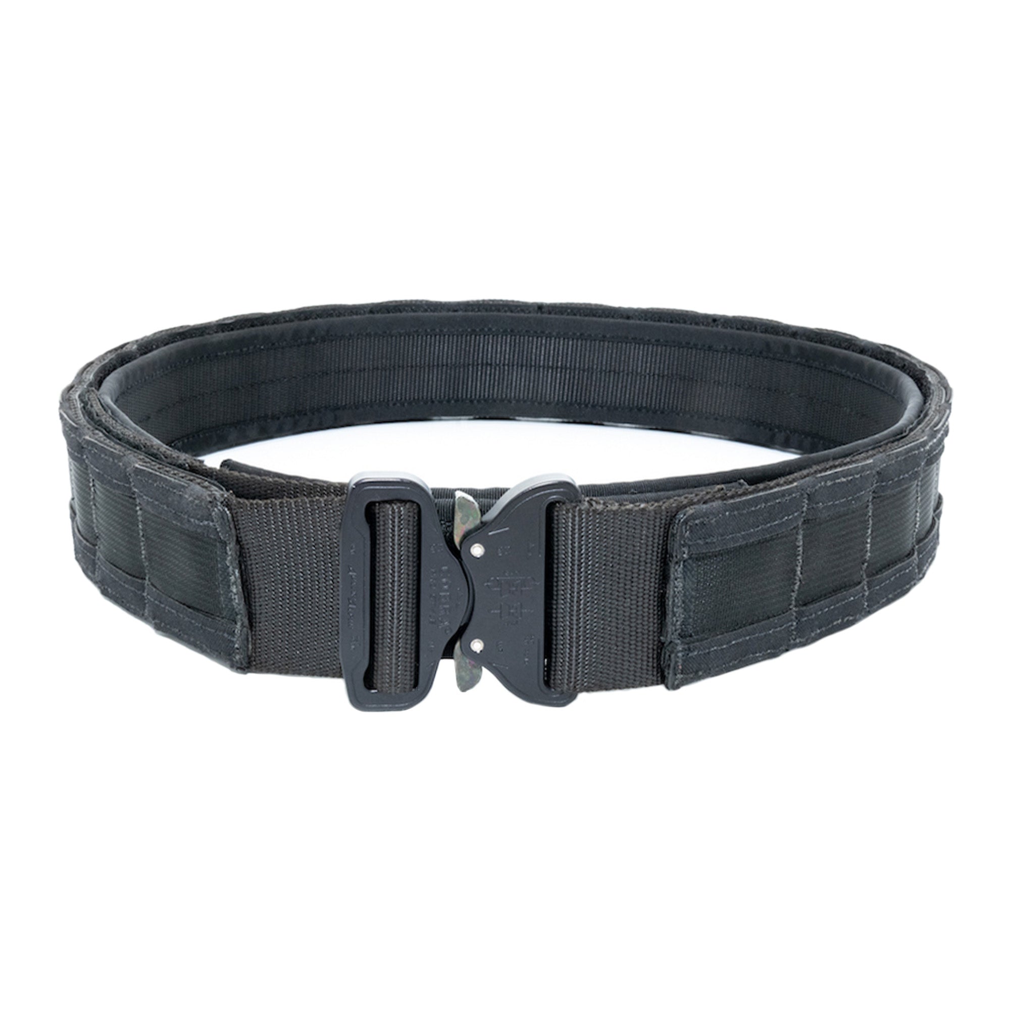 The D3 Belt provides a proven foundation to support any mission requirement for the modern warfighter delivering optimal synergy between belt rigidity and comfort. Constructed of 2" nylon webbing instead of the common industry practice of 1.5" or 1.75" webbing allows for an appropriate 1 inch spacing between MOLLE positions eliminating binding on pouches and other MOLLE attached accessories. The D3 Belt is designed with reversed closure orientation to eliminate bulk material from excess sizing adjustments and to access additional MOLLE real estate, enabling more options for holster mounting. To ensure load bearing function a proprietary internal stiffener is incorporated into the design for added rigidity without compromising weight, comfort or flexibility. The inside of the belt is lined with hook Velcro and closes with the proven Cobra buckle for quick attachment capability with the included inner belt.