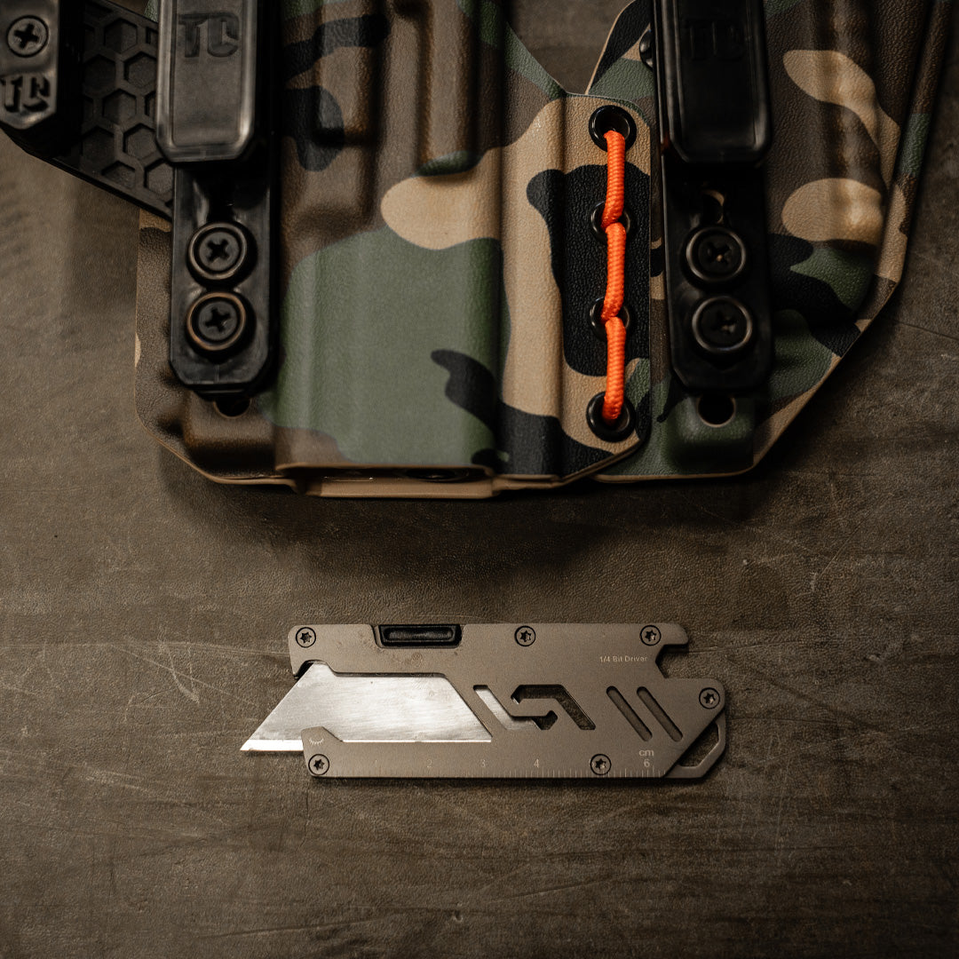 Made of high carbon stainless steel and designed to fit standard sized utility blades, this EDC tool is a must have for any keychain. For many of the RE Factor team members, this EDC tool gets used more than any other pocket knife or blade. Its small and thin profile ensures it can be comfortable attached to any keychain without becoming a nuisance. Whether you're in need of a small self defense tool, new bottle opener, or something to cut amazon packages with, this is our top pick.