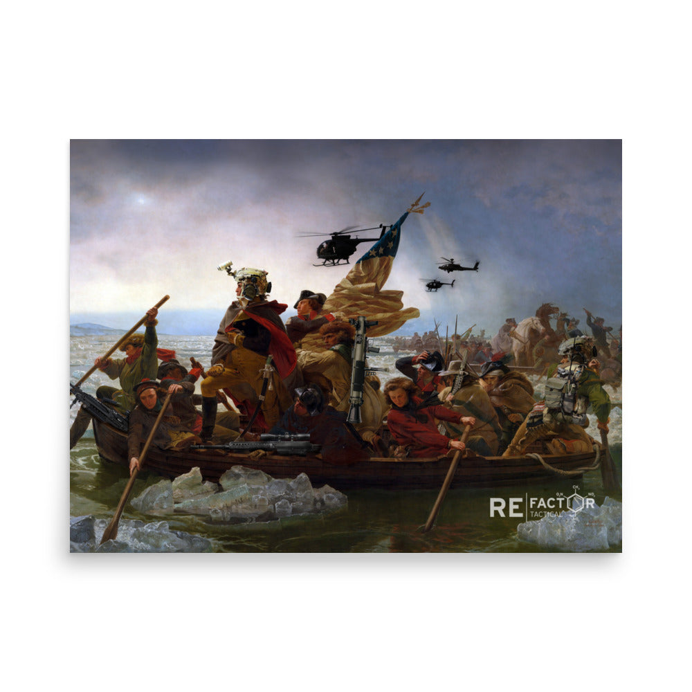 After doing some research we managed to find this original print of Washington conducting an amphibious assault across the Delaware. We don’t know how he managed to get helicopters, Carl Gs, crew serve machine guns and ballistic helmets back then but who are we to judge? In the end we are just happy that he decided to bring a little boot to face and secured our right to use the 1st Amendment (among others).