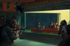 The original Nighthawk Painting by Edward Hopper was originally painted in 1942 back when our granddads were slaying Nazis. We wanted to put more of a modern touch on the painting with our rendition. This painting is part of our ongoing Operator Art series.