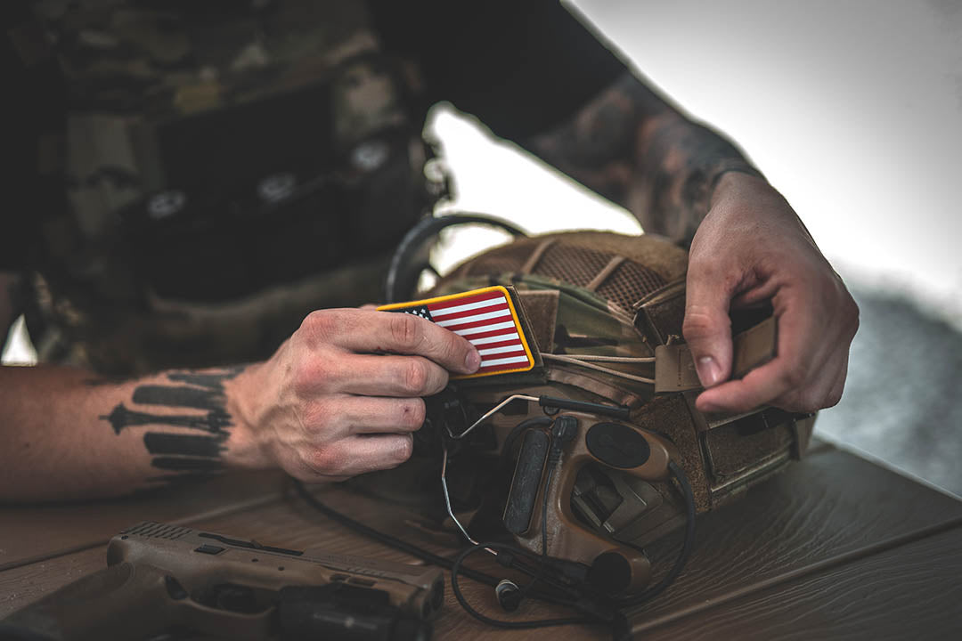 The Patented RDX Helmet Cover is specifically designed to be an all encompassing helmet cover. Made from heavy-duty nylon and polyester mesh material, the cover incorporates an integrated counterweight system with slim 1lb metal weights. The counterweight pouch also includes a large outer velcro panel and retention strap for securing NVG battery packs. Velcro retention flaps on each side are used to secure cables and can also be used for adhering patches. The top of the cover boasts a large verticle velcro strip adhering IR patches/lights and includes a mesh/paracord inset on each side for attaching foliage, chemlights, or guiding wires.